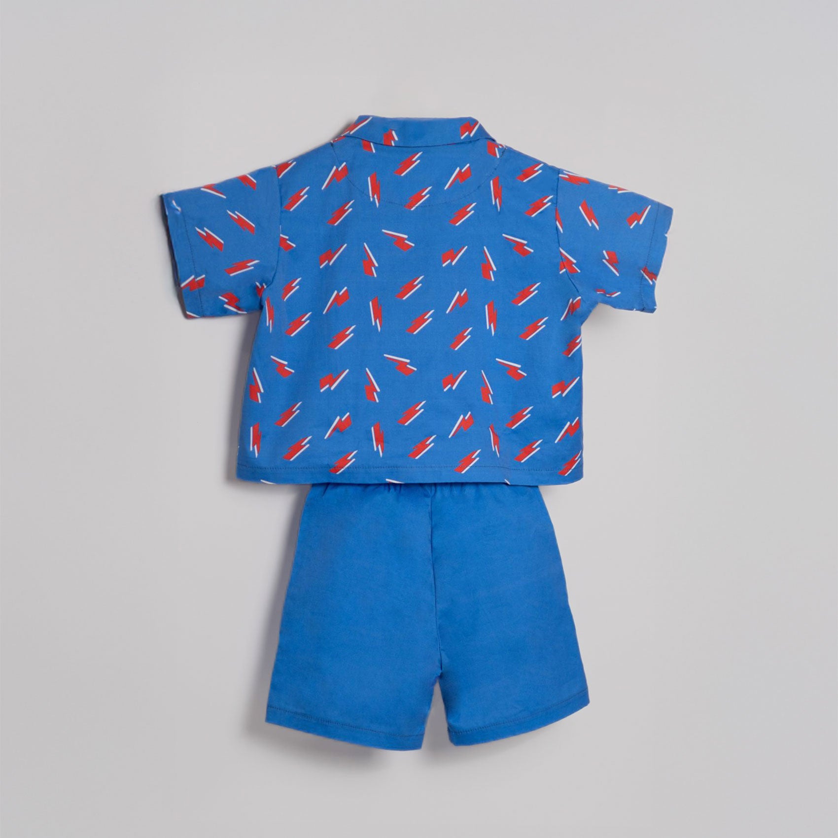 Boys Two Piece Set made of 100% Cotton. Blue color shorts and shirt set with super charge design in shirt. Breathable and comfortable material.